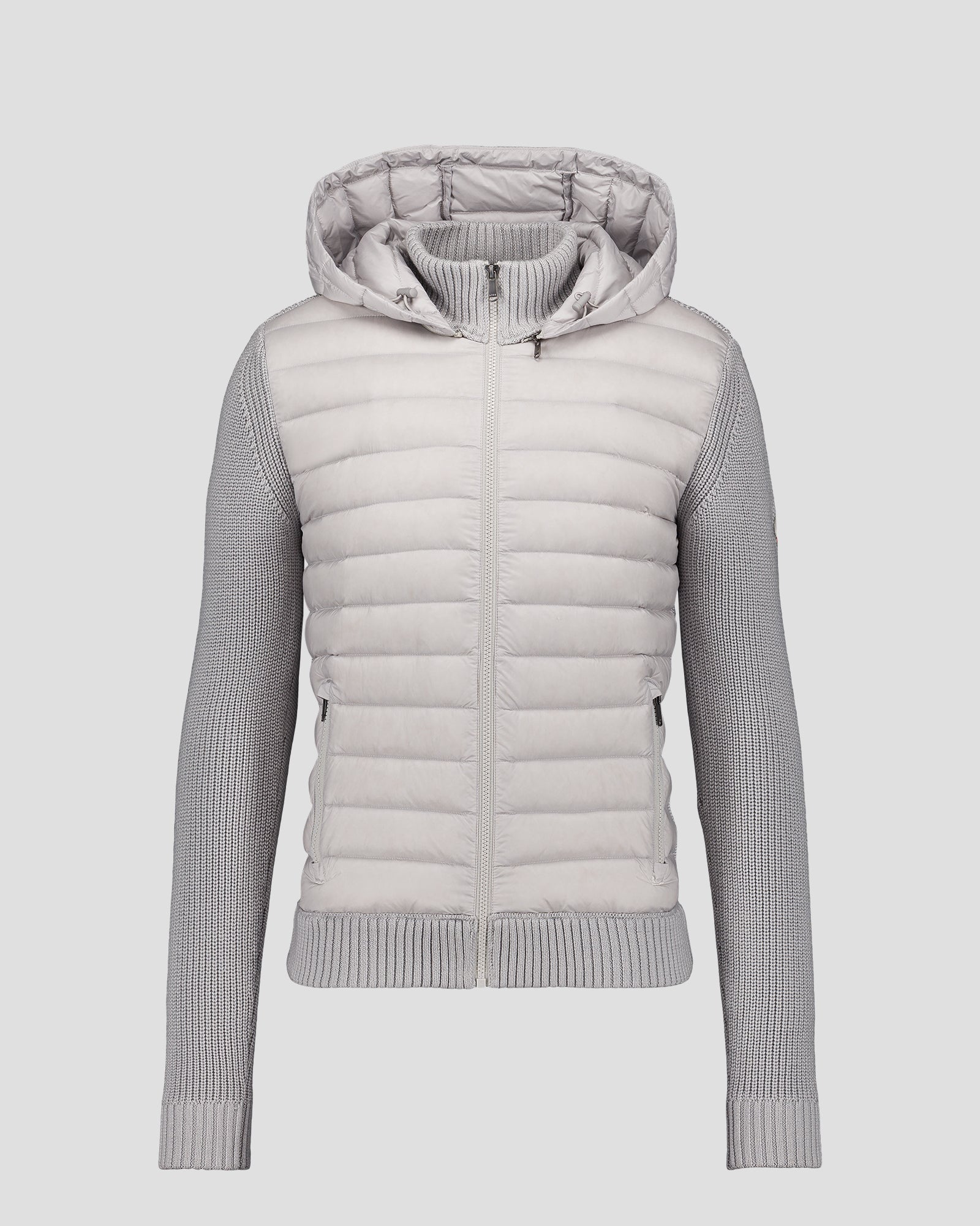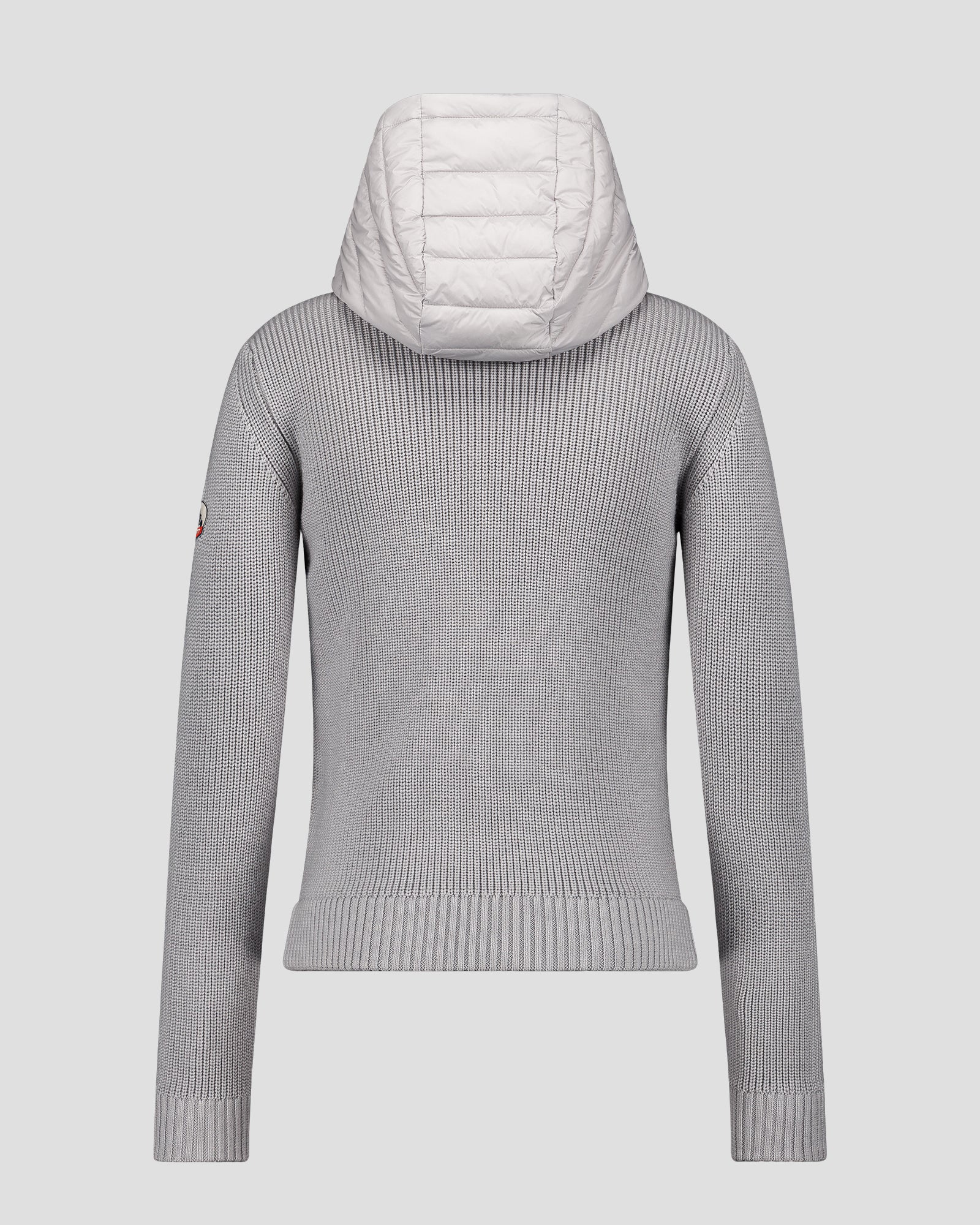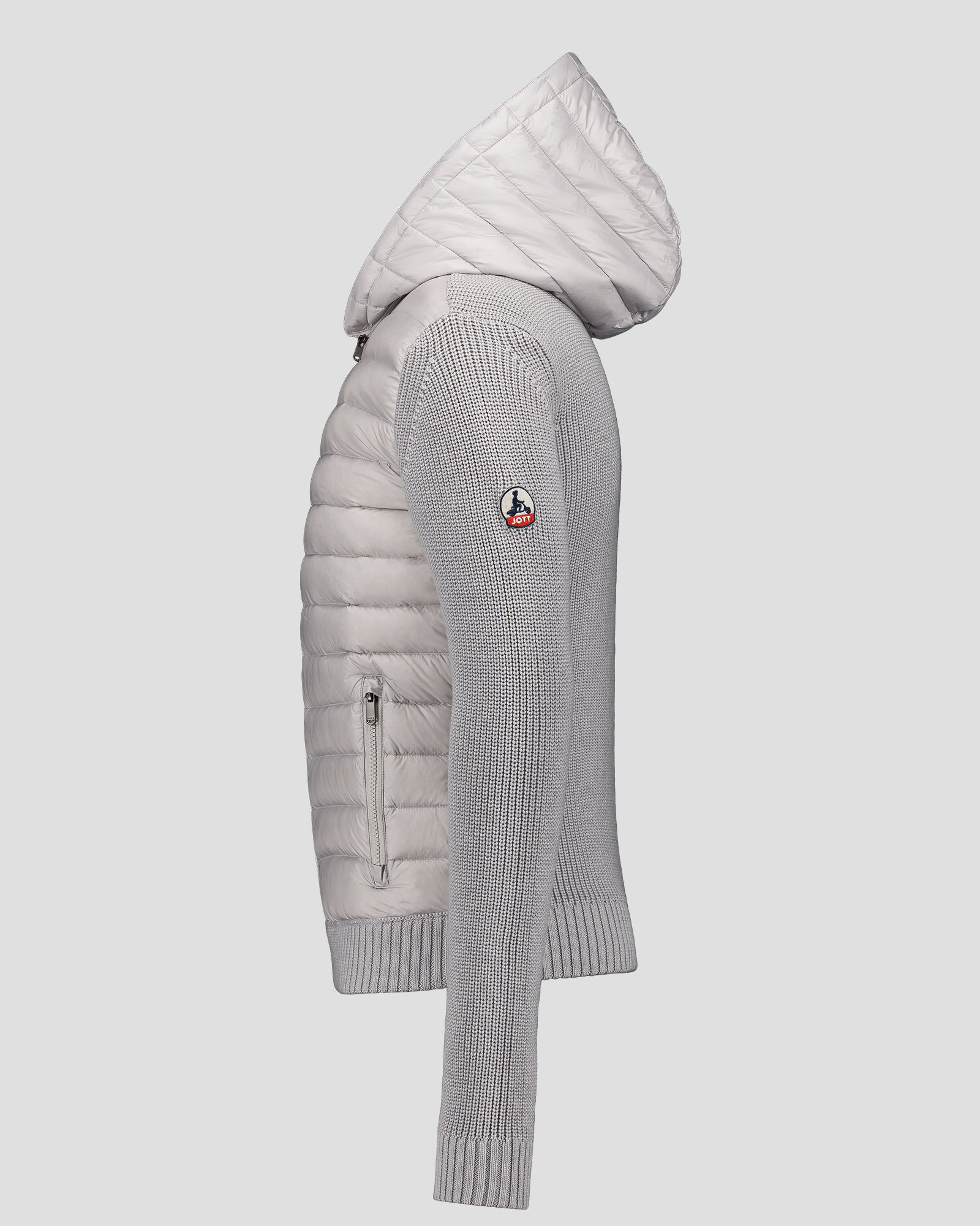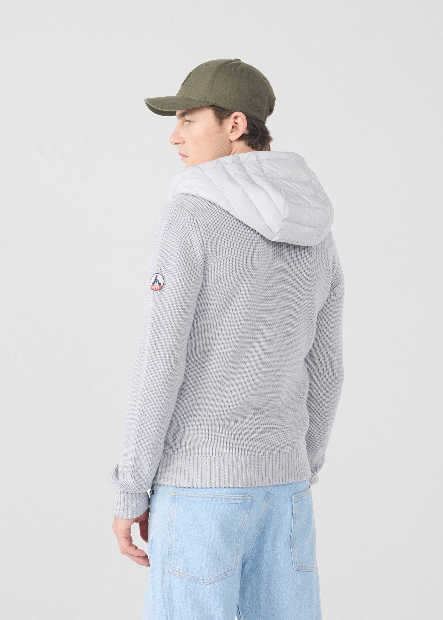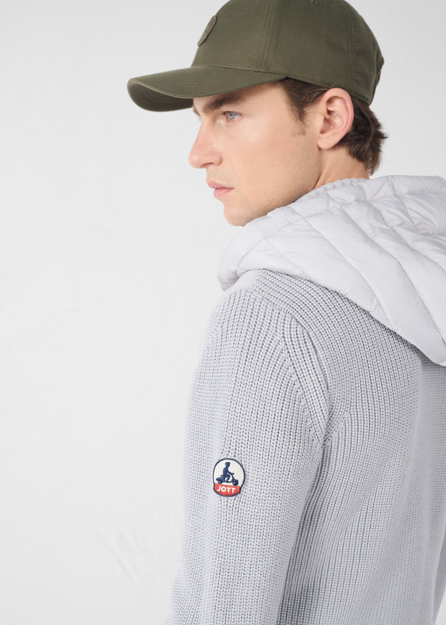 Une doudoune à capuche alliant douceur de la maille mélangée et modernité du tricot aux manches, pour un contraste subtil et élégant. Sa fermeture zippée frontale et ses poches latérales pratiques renforcent son côté fonctionnel, tandis que sa silhouette décontractée en fait une pièce facile à porter au quotidien, idéale pour un look casual-chic.