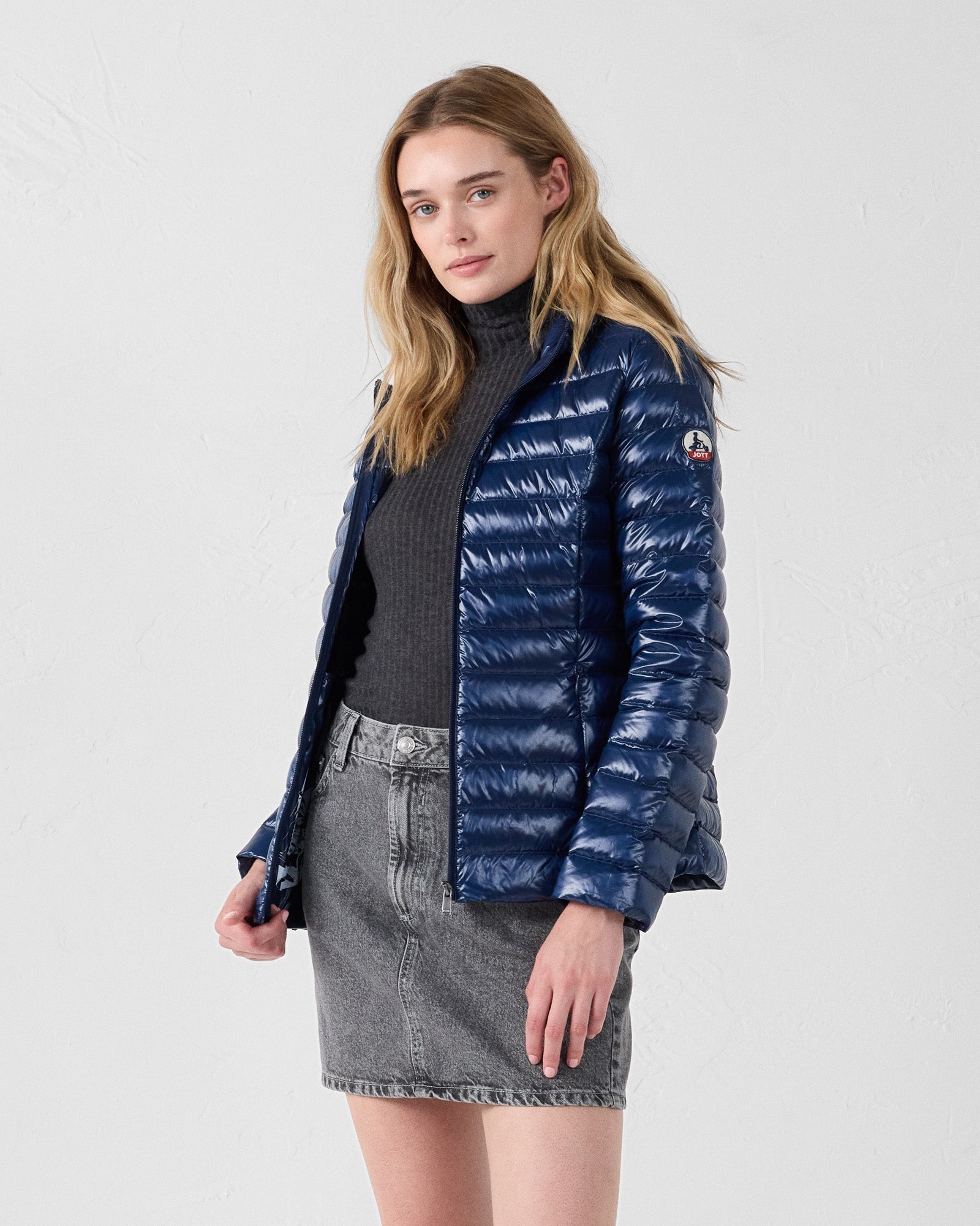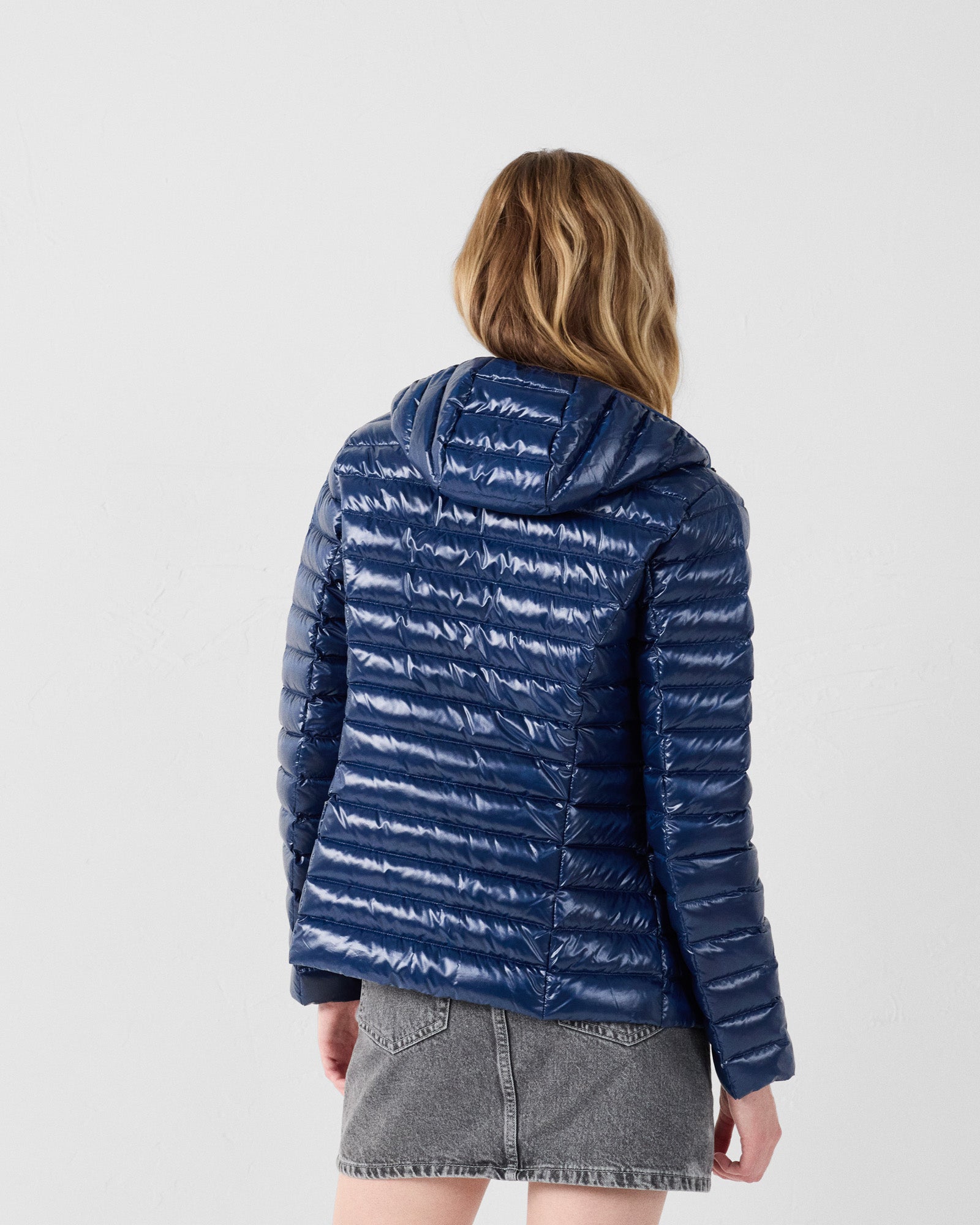 Doudoune à capuche en polyamide brillant, parfaite alliance entre légèreté, confort et éclat. Son design épuré est relevé par des détails soignés : poches zippées invisibles et passepoil contrasté à l’intérieur pour une touche de caractère discrète. Une pièce lumineuse qui dynamise instantanément la silhouette.