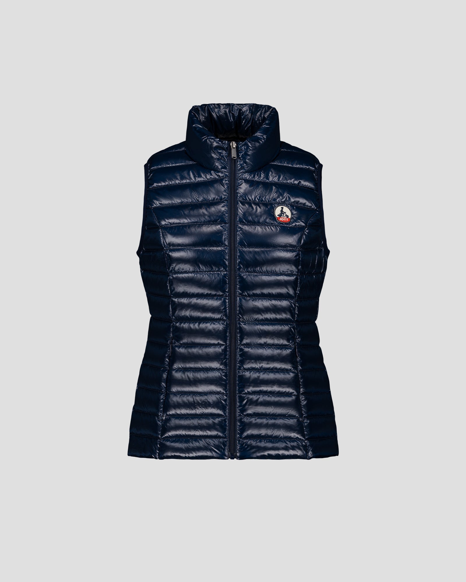 Doudoune sans manches en polyamide brillant, pour une silhouette légère et pleine d’allure. Son tissu emblématique capte la lumière avec style, tandis que les poches zippées invisibles et le passepoil contrasté à l’intérieur ajoutent une touche de finition soignée. Un essentiel à superposer pour upgrader facilement n’importe quel look.