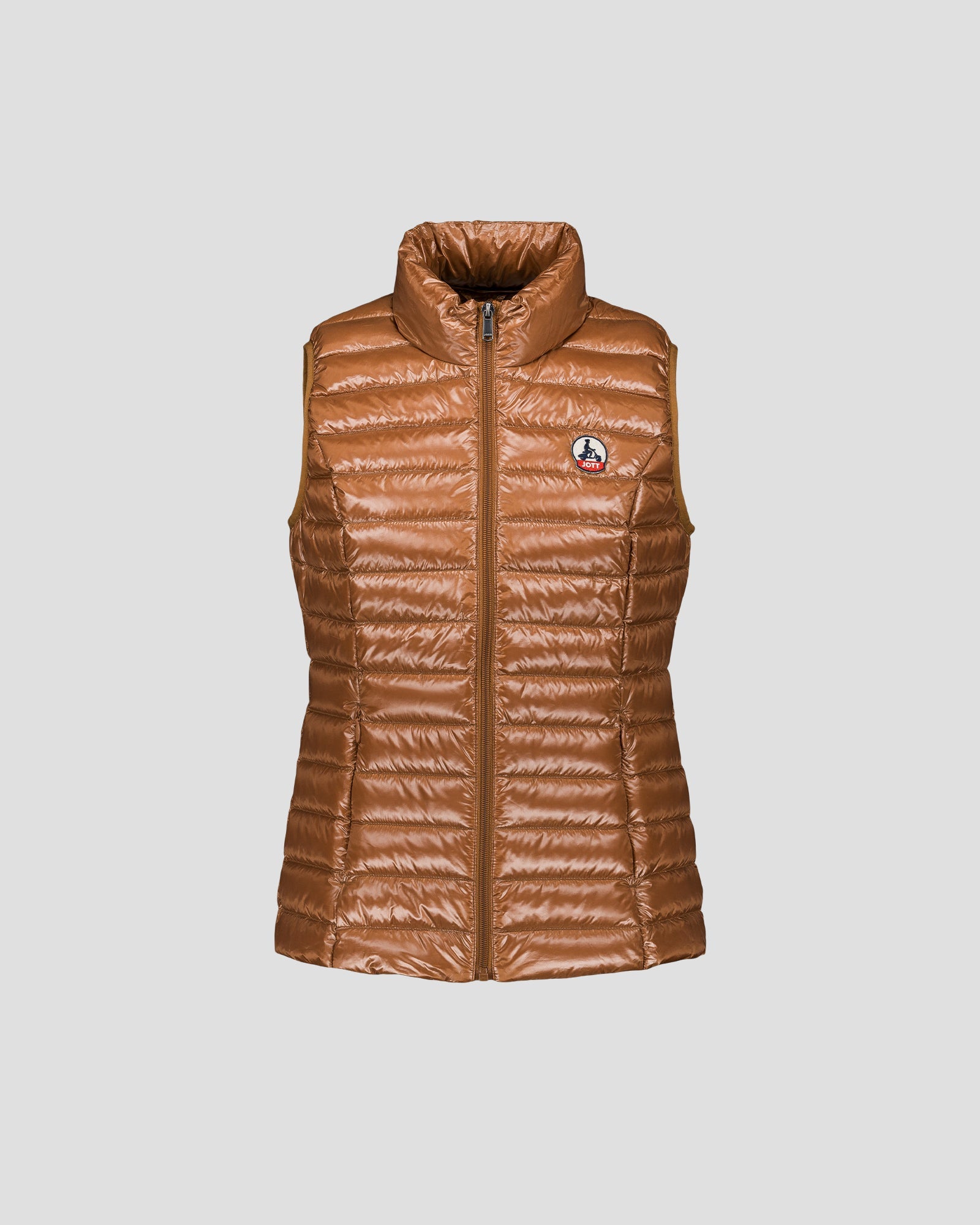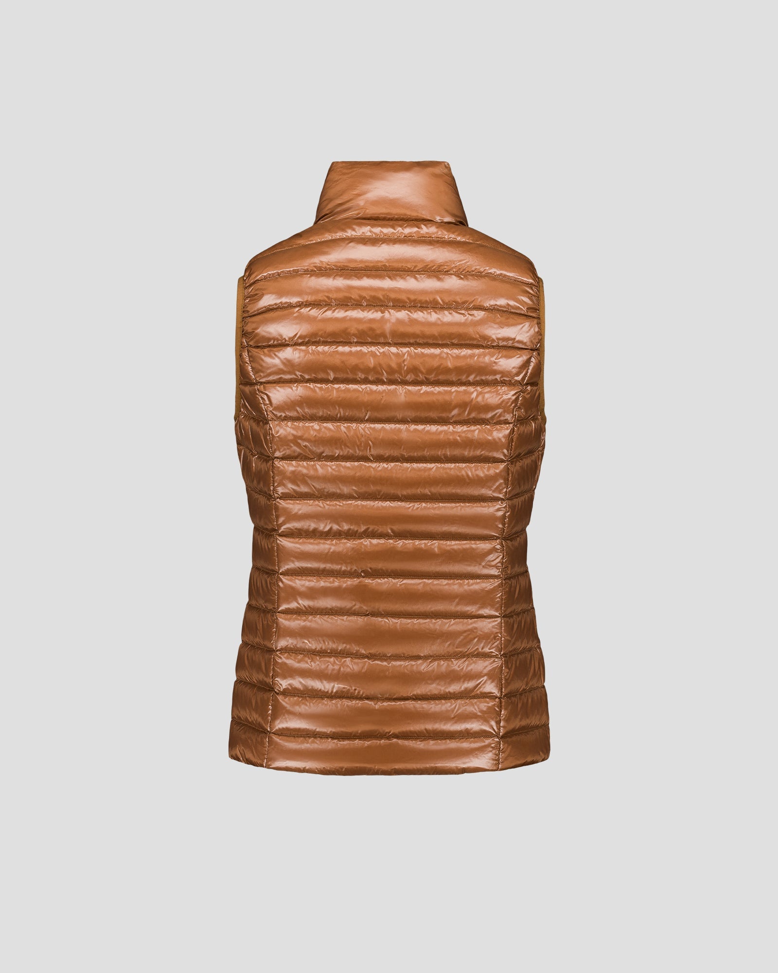 Doudoune sans manches en polyamide brillant, pour une silhouette légère et pleine d’allure. Son tissu emblématique capte la lumière avec style, tandis que les poches zippées invisibles et le passepoil contrasté à l’intérieur ajoutent une touche de finition soignée. Un essentiel à superposer pour upgrader facilement n’importe quel look.