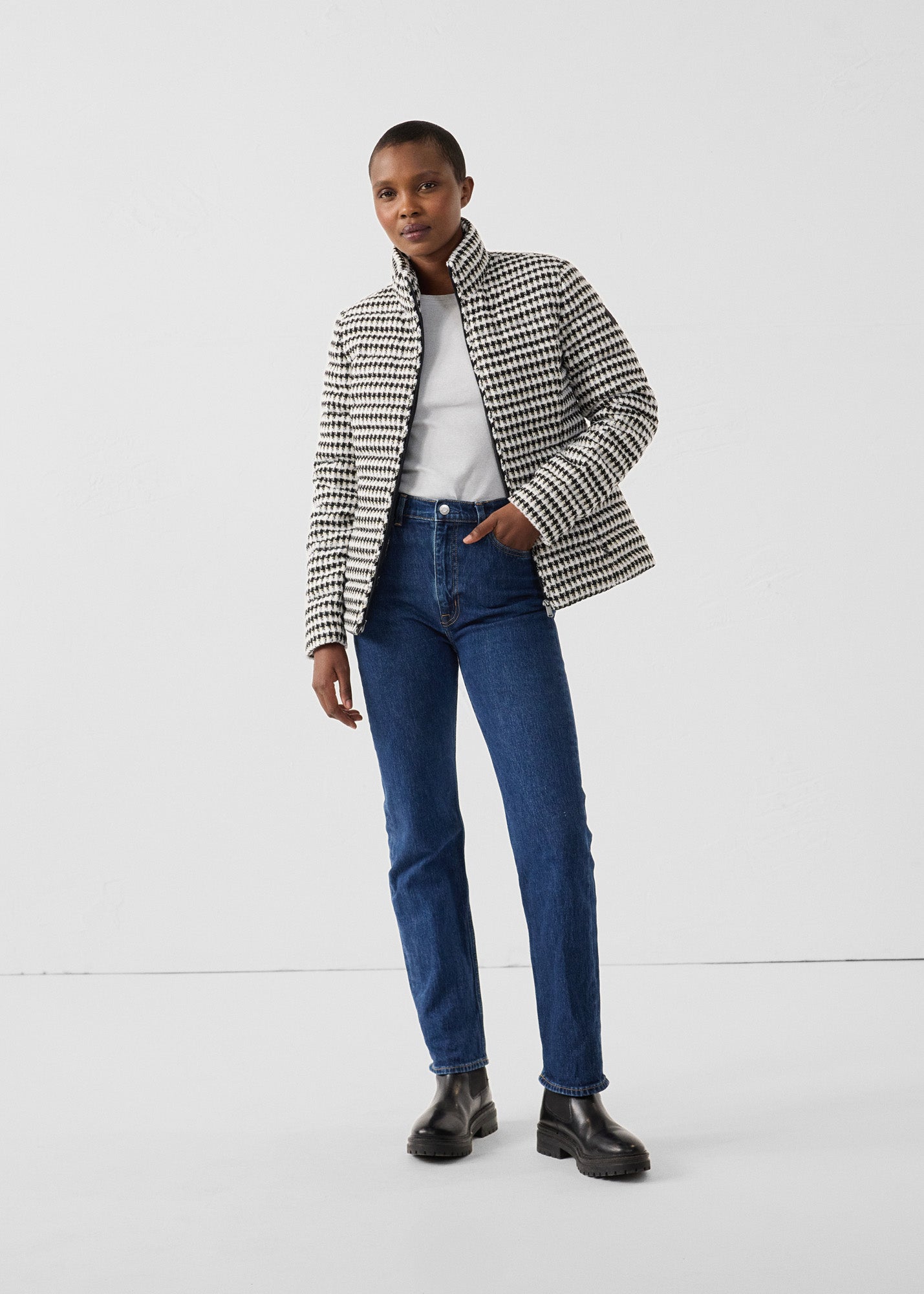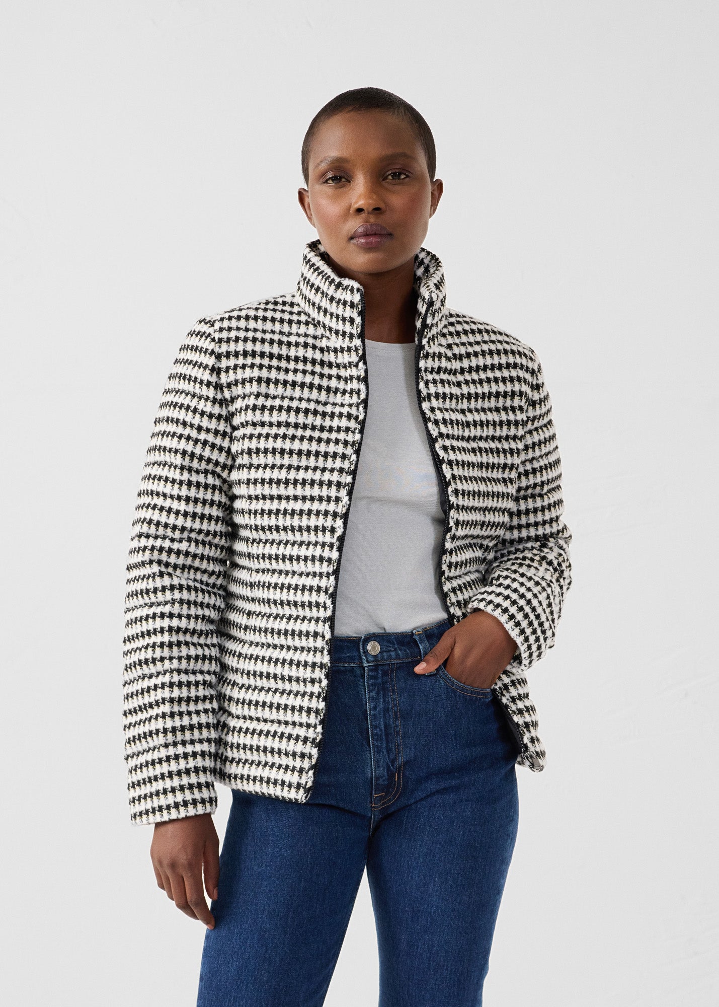 Doudoune en tweed multicolore, parfaite fusion entre esprit couture et confort du quotidien. Son tissu texturé donne du relief au look, tandis que les poches zippées invisibles assurent une finition clean et pratique. Une pièce forte, facile à porter, qui ne passe pas inaperçue.
