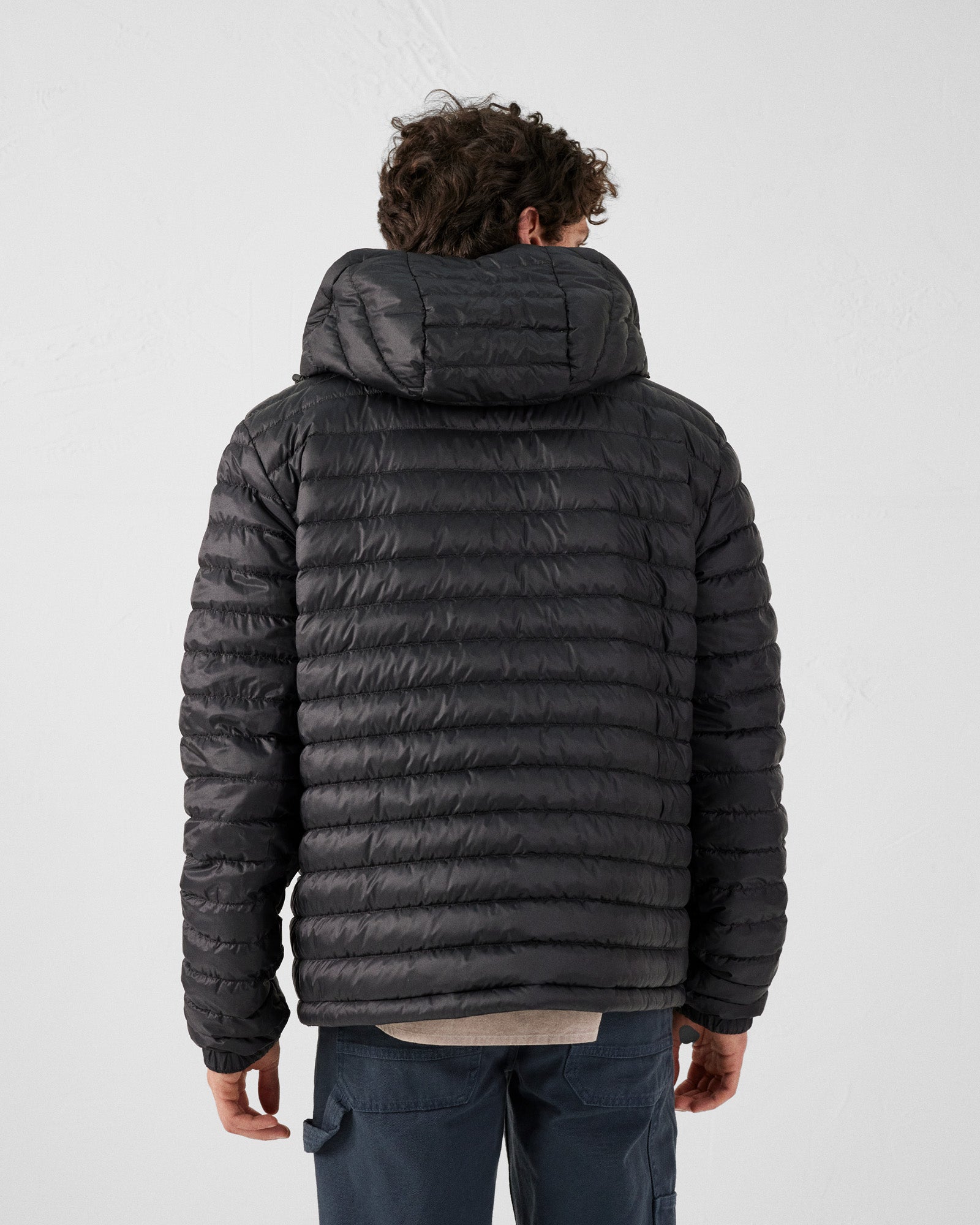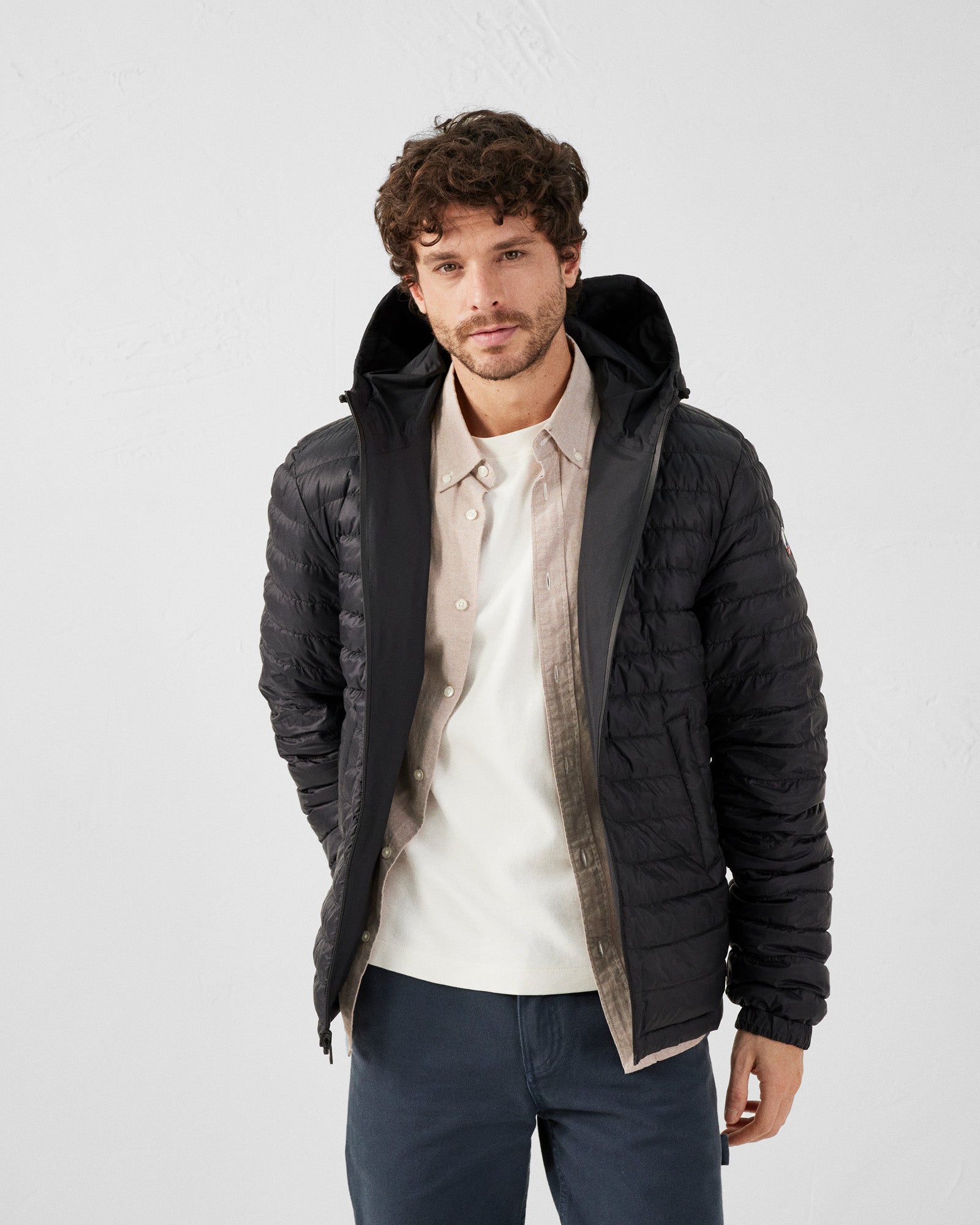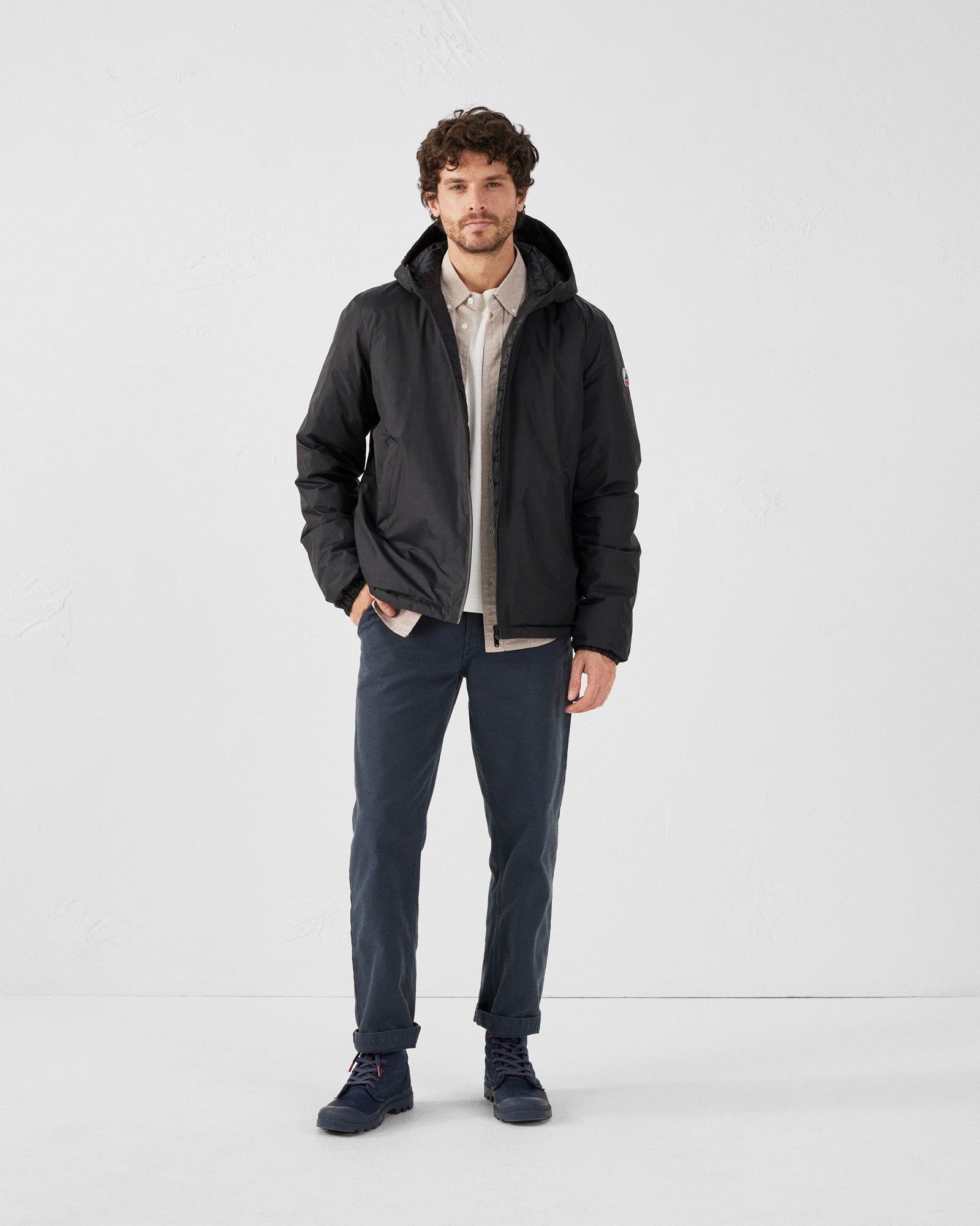 - Face B : Doudoune en matière matelassée satinée et déperlante, logo feutrine manche gauche