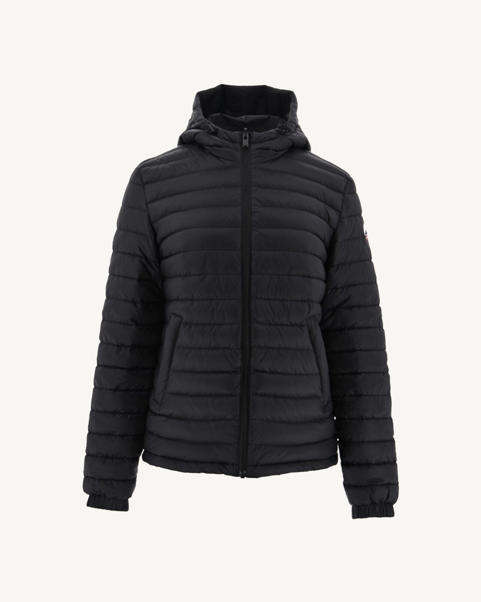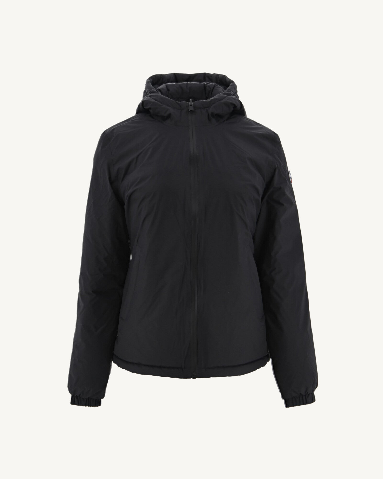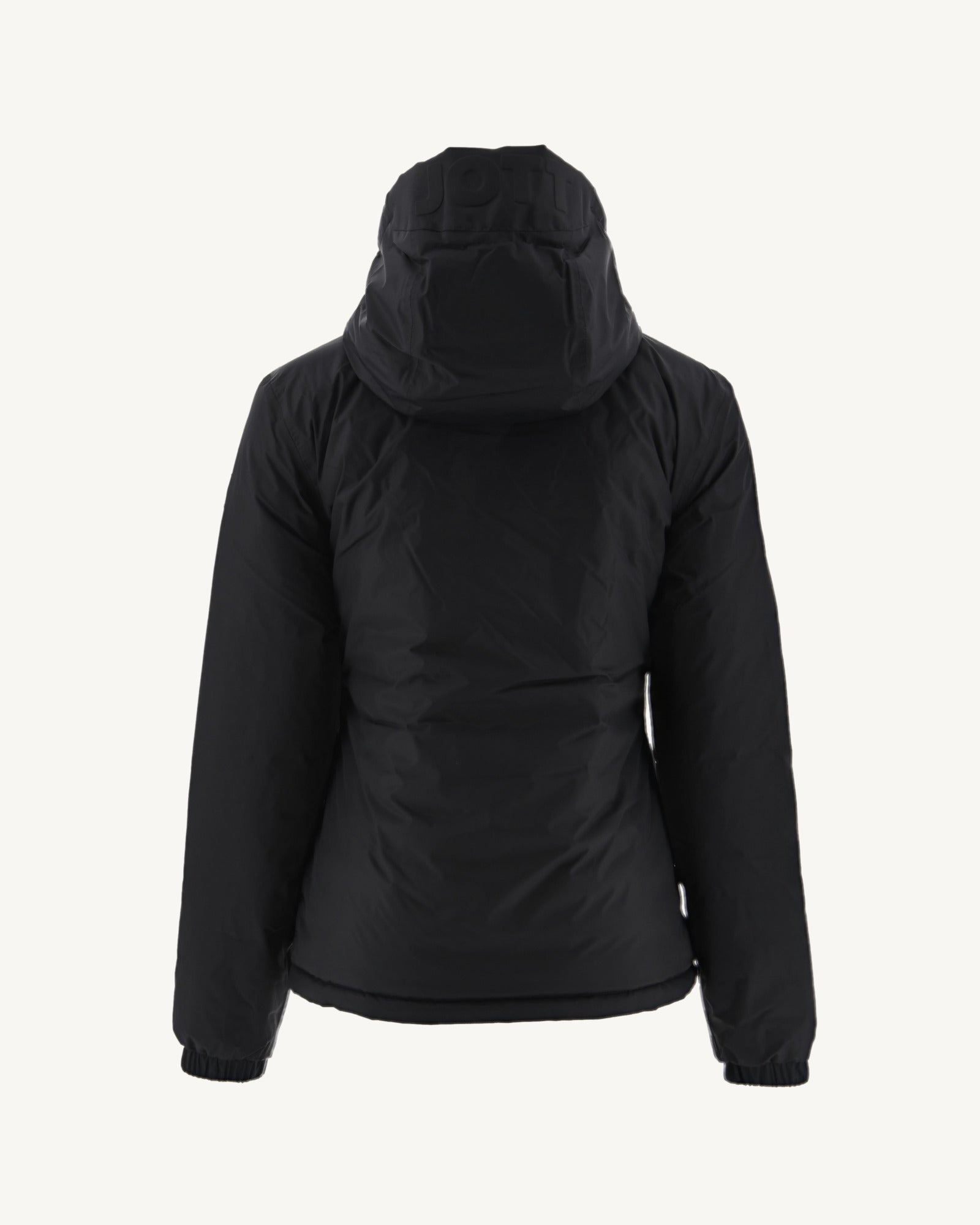 La doudoune réversible pour femme VIENNE est une pièce permanente du vestiaire de JOTT. Retrouvez sa légèreté et son confort au fil des saisons avec ce modèle dont les deux faces ont le même coloris : l'une parfaitement imperméable (fermeture zippée étanche ), l'autre en matelassage. La capuche présente le logo de la marque, les poches sont passepoilées, les coutures thermosoudées. . . Ce modèle est disponible en noir et en marine.