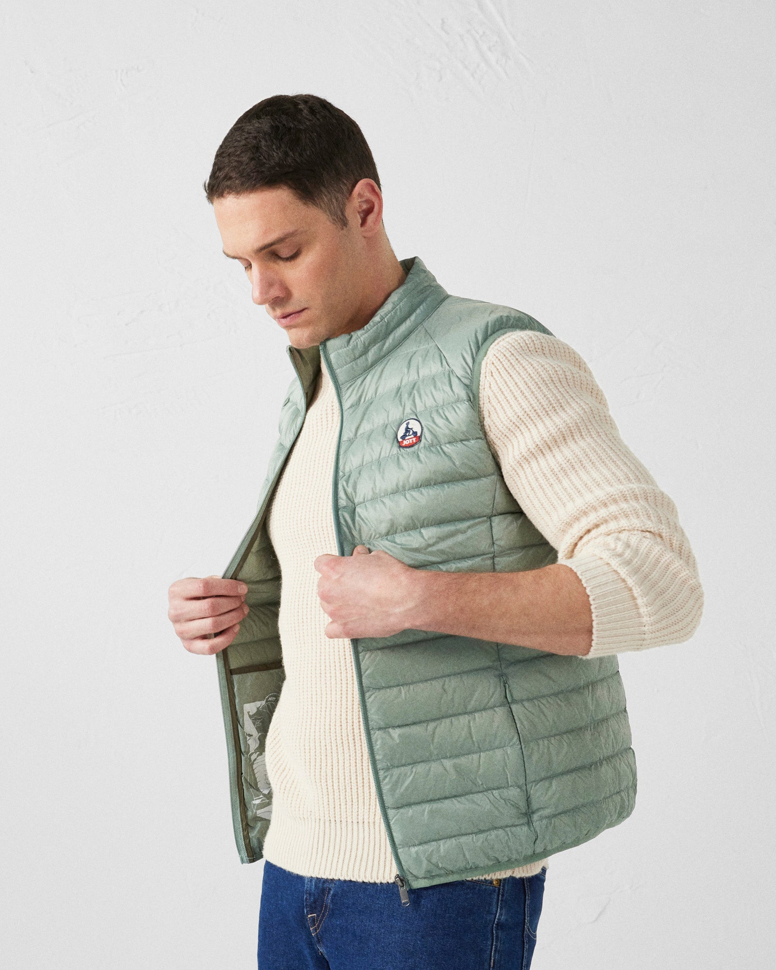 TOM, la doudoune légère sans manches iconique à petit col montant. Un must have à glisser sous toutes les vestes.