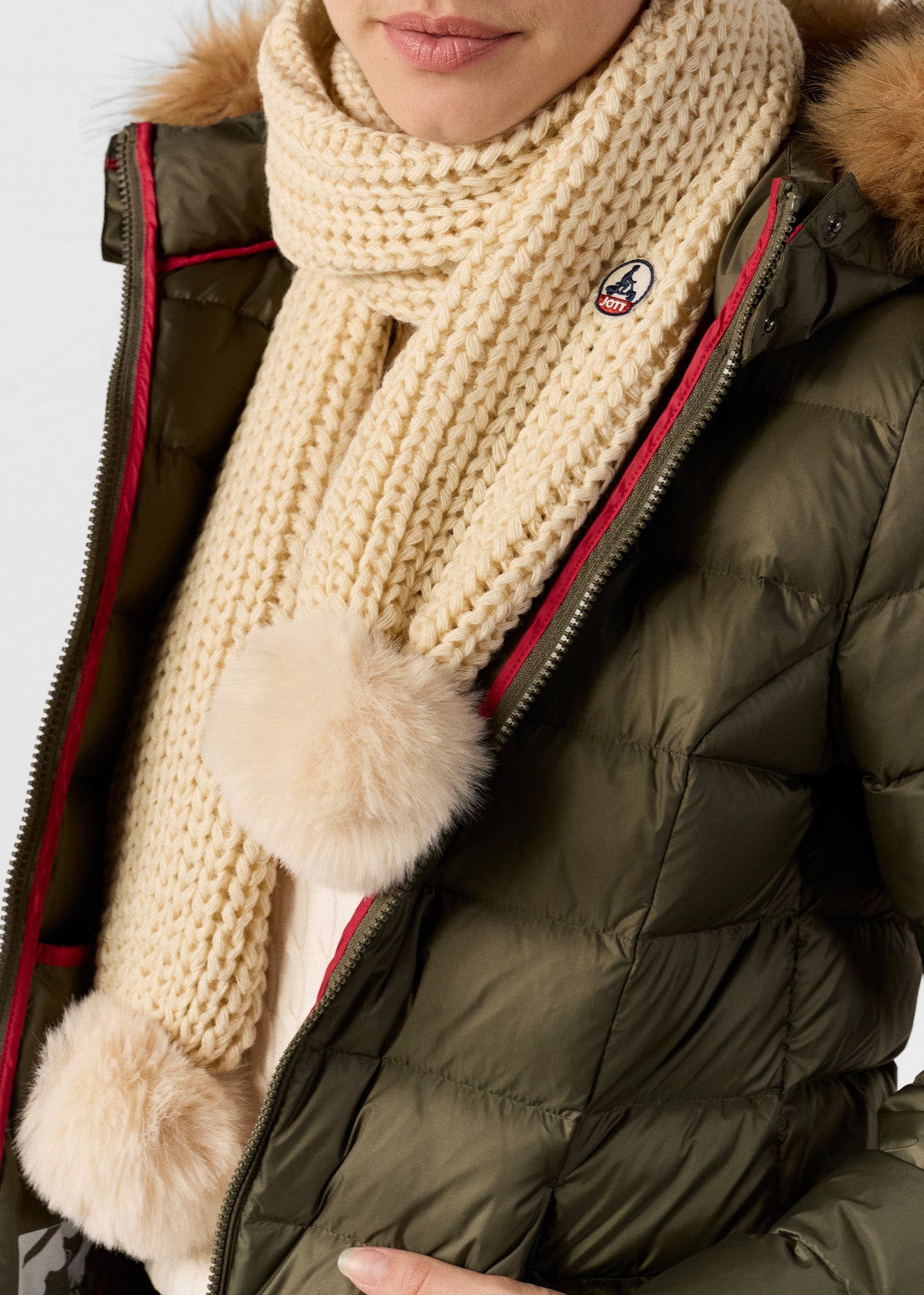 Une touche ludique pour affronter l’hiver en douceur : cette écharpe en maille côtelée séduit par son volume généreux et ses jolis pompons. Confectionnée à partir de matières recyclées et de laine, elle mixe chaleur, confort et esprit playful. À assortir au bonnet coordonné pour un look plein de charme.