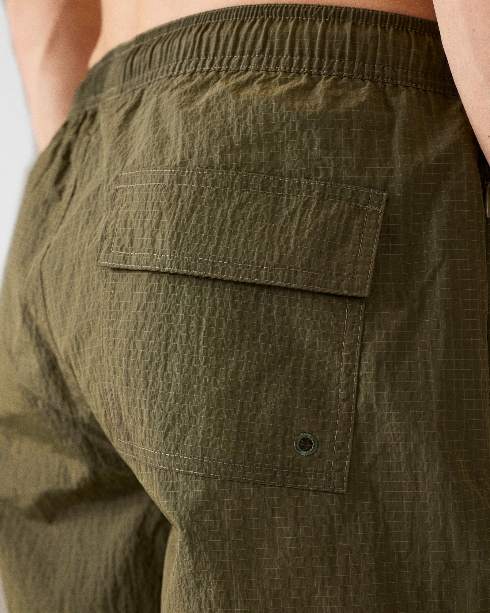 Avec son effet froissé et sa matière ripstop, STEVE revisite le short de bain classique avec une touche technique. Sa taille élastiquée, ses poches zippées et l’œillet d’évacuation en font une pièce aussi fonctionnelle que stylée. À porter à la plage ou en ville, il t'accompagne partout sans compromis sur le look.