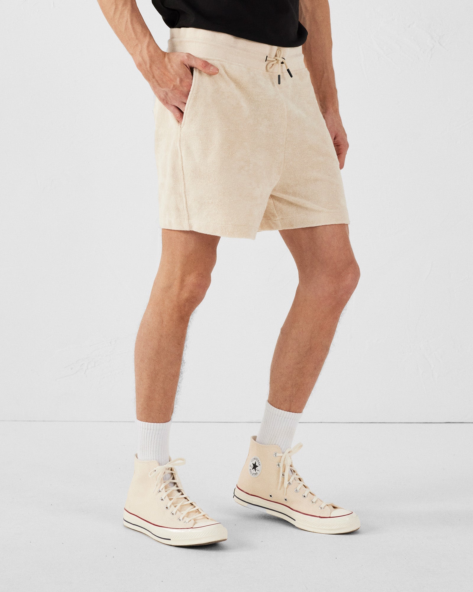 Short éponge au fit décontracté, EAGLE est conçu pour le confort estival. Doté de poches pratiques et de cordons de serrage, il est parfait pour des journées à la plage ou en ville.