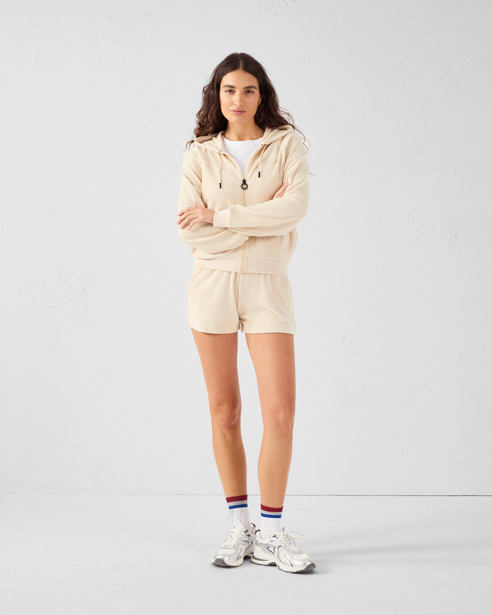 Que vous ayez besoin d'une veste décontractée pour la plage ou d'une option légère pour après la salle de sport, la veste ANEMONE est idéale. Conçue en matière éponge, elle offre un confort exceptionnel et se marie parfaitement avec le reste de votre garde-robe.